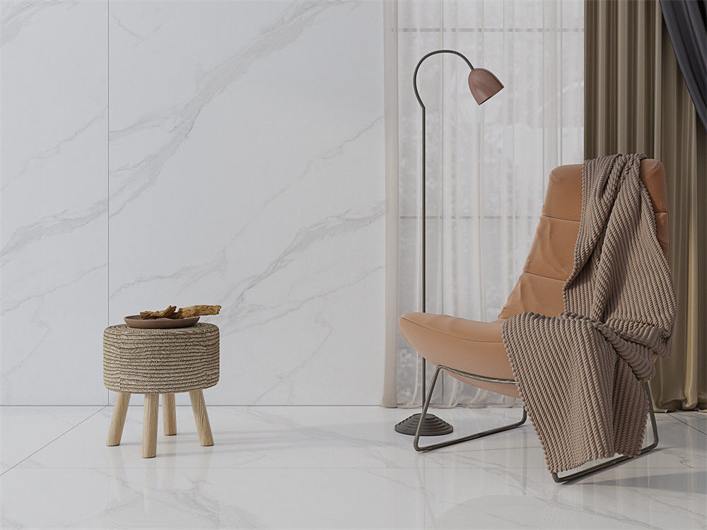 Khi bạn trở về từ công việc bên ngoài và bật đèn ở nhà, bạn sẽ thấy rằng sàn nhà được trang trí bằng các tấm đá nhựa vintage.và hiệu ứng trải sàn là rất khí quyển. Không gian phòng khách rất sáng. Khi ngồi xuống để uống nước, bàn ăn của một tấm đá sintered màu trắng carrara là rất sang trọng, chống nước và đẹp.Bảng đá nhựa lớp AAA gia tăng độ sáng và tinh tế cho phòng khách.